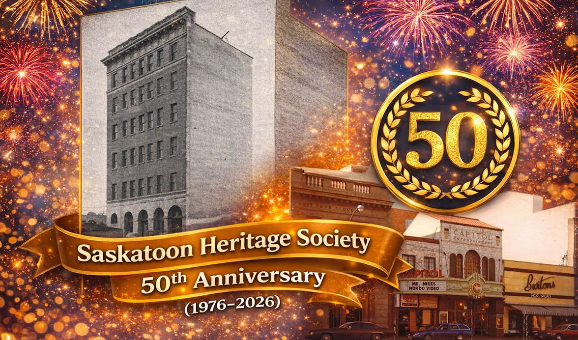 - 1:30PM The History of Heritage in Saskatoon: & 50 Landmark Buildings Demolished with noted Saskatoon Historian Terry Hoknes